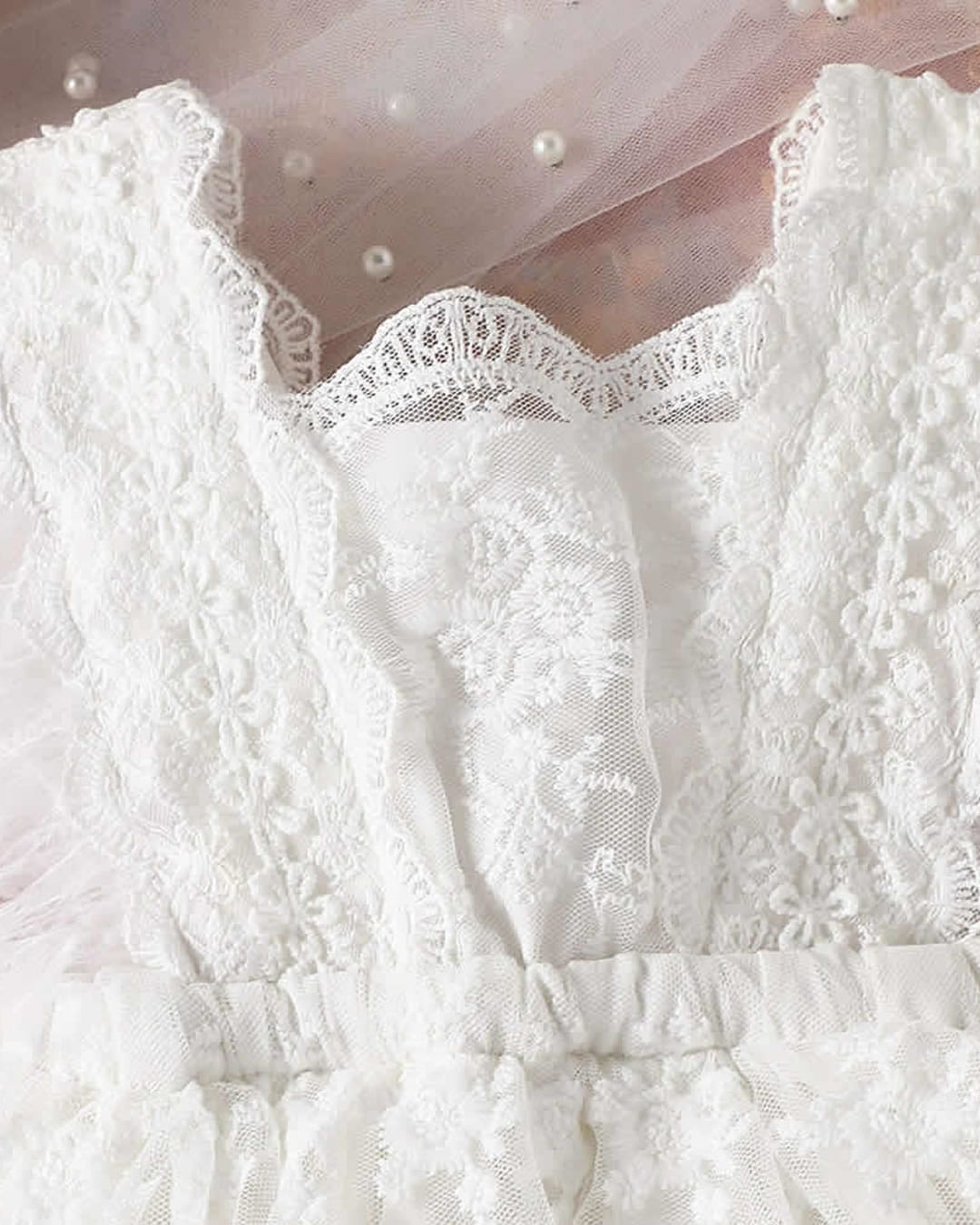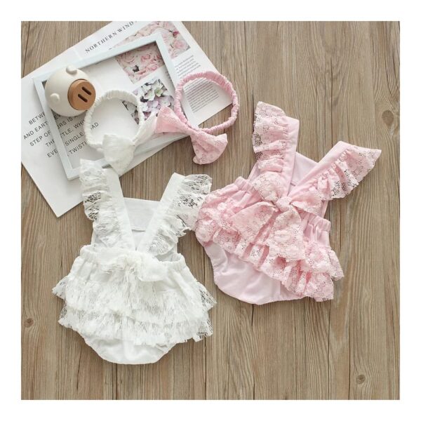 Βρεφικό κορμάκι λευκό δαντελένιο με πούπουλα