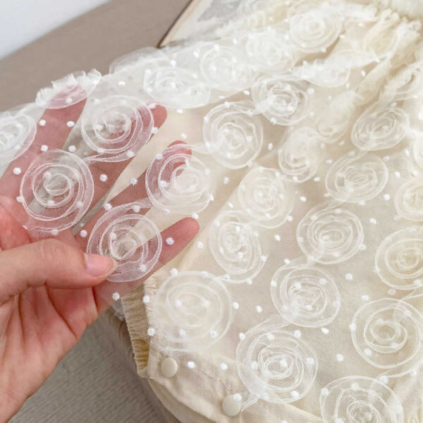 Βρεφικό κορμάκι εκρού τούλινο πουά με ανάγλυφα τριαντάφυλλα