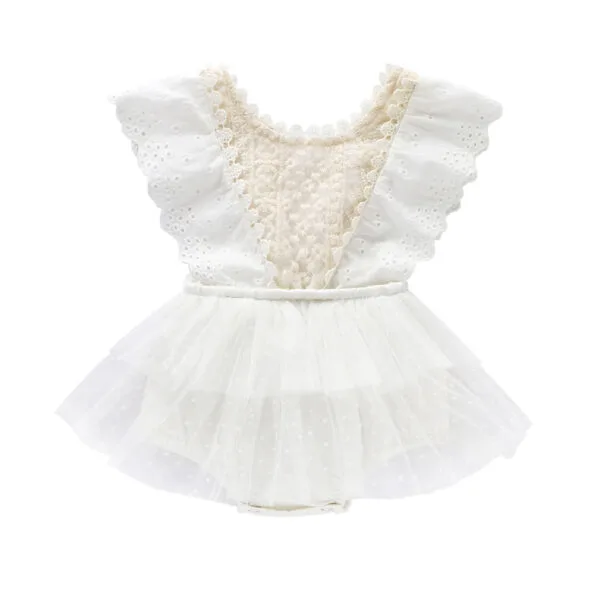 Βρεφικό κορμάκι λευκό με δαντελίτσα και πουά τούλι