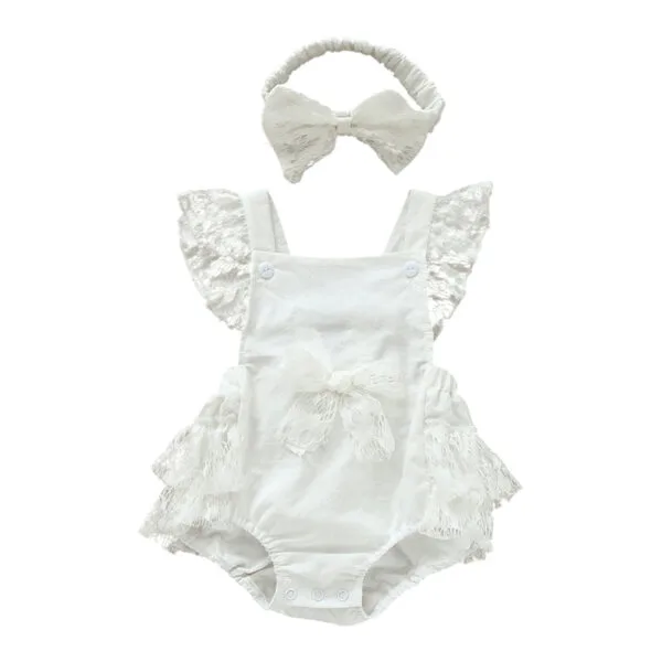Βρεφικό κορμάκι λευκό με δαντελίτσα και κορδέλα