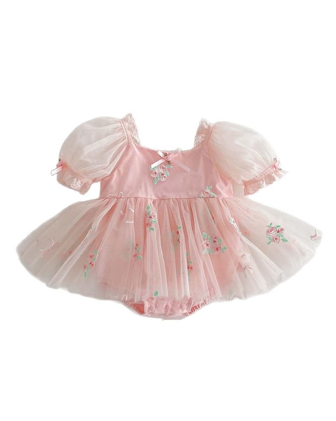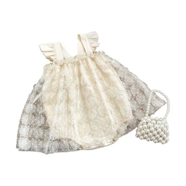 Βρεφικό κορμάκι εκρού τούλινο πουά με ανάγλυφα τριαντάφυλλα