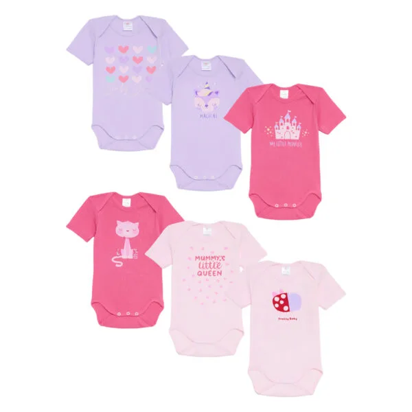 Βρεφικά κορμάκια για κορίτσι ροζ-φούξια-λιλά (6 τμχ)