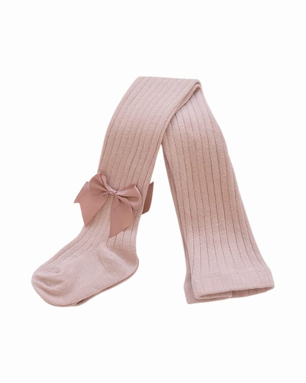Βρεφικό/παιδικό καλσόν ροζ χοντρό με σατέν φιογκάκι