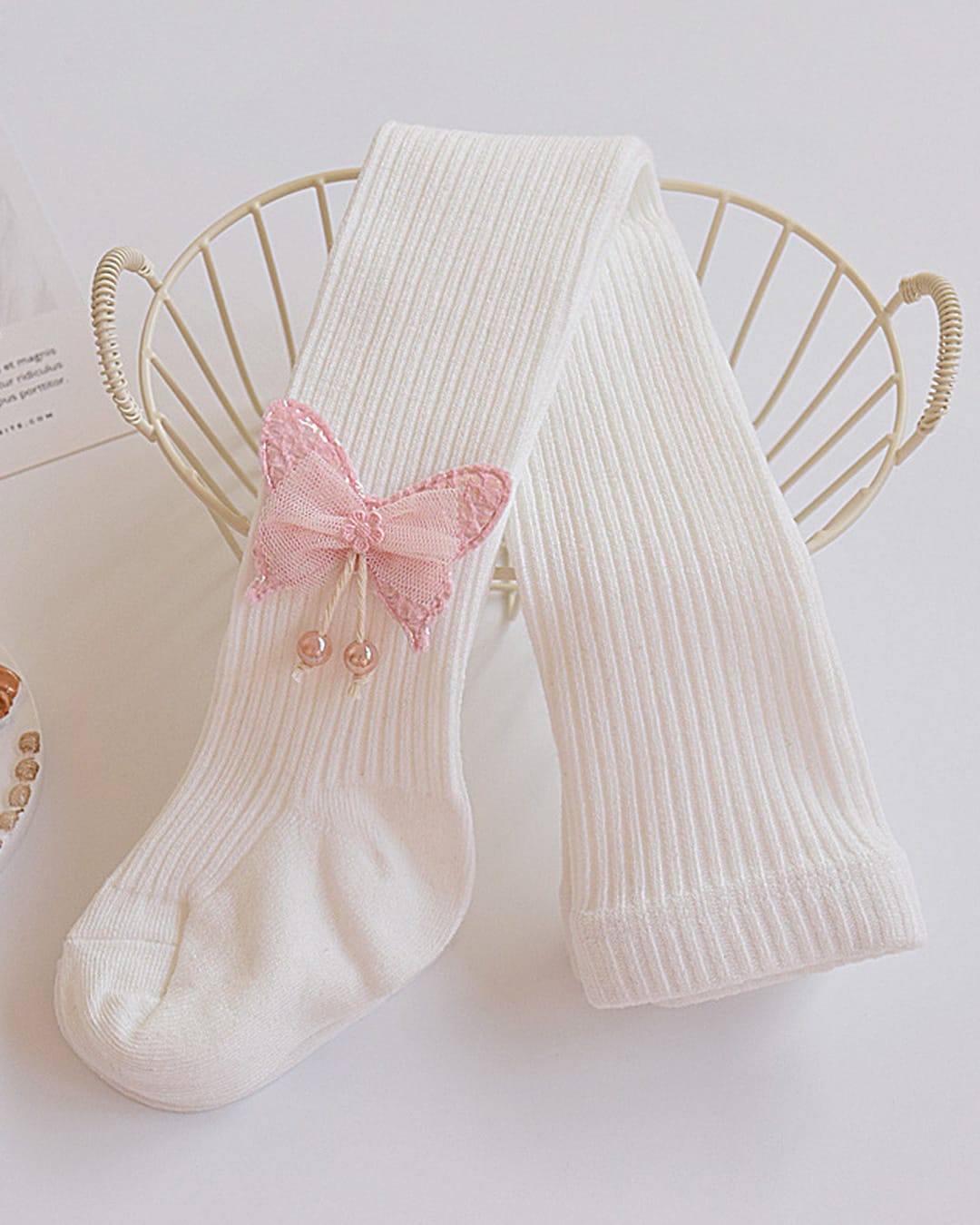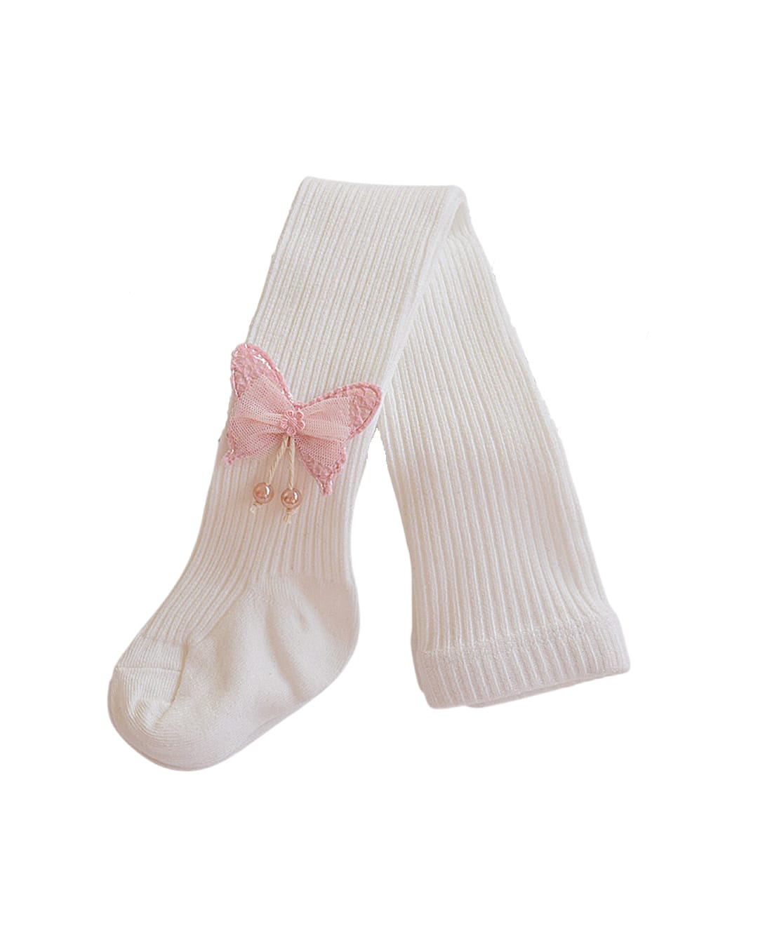 Βρεφικό/παιδικό καλσόν λευκό χοντρό με ροζ Πεταλούδα