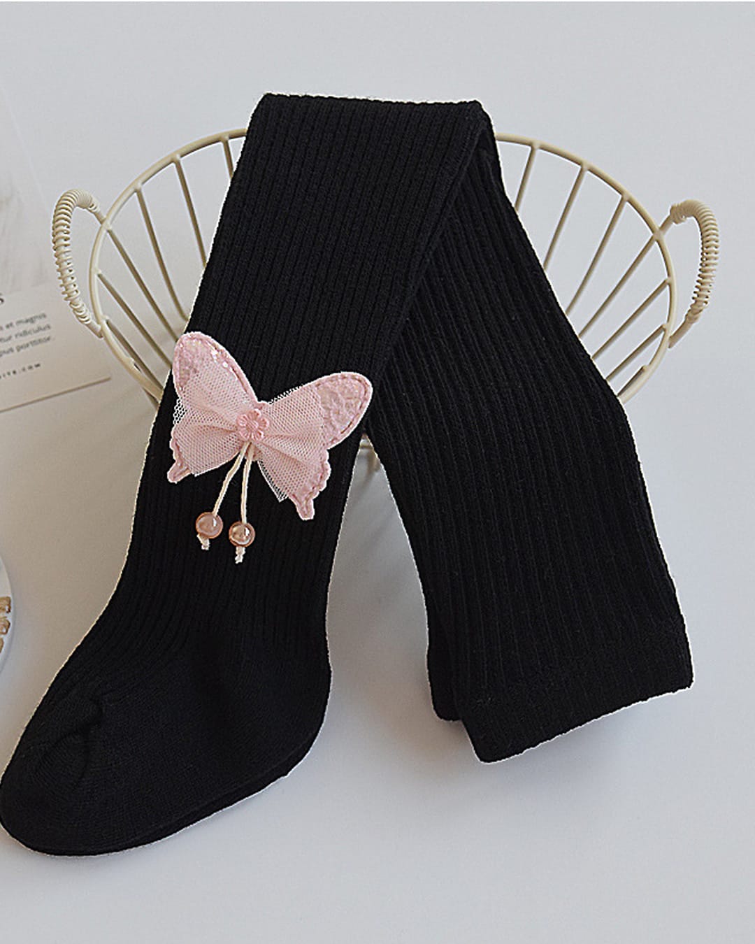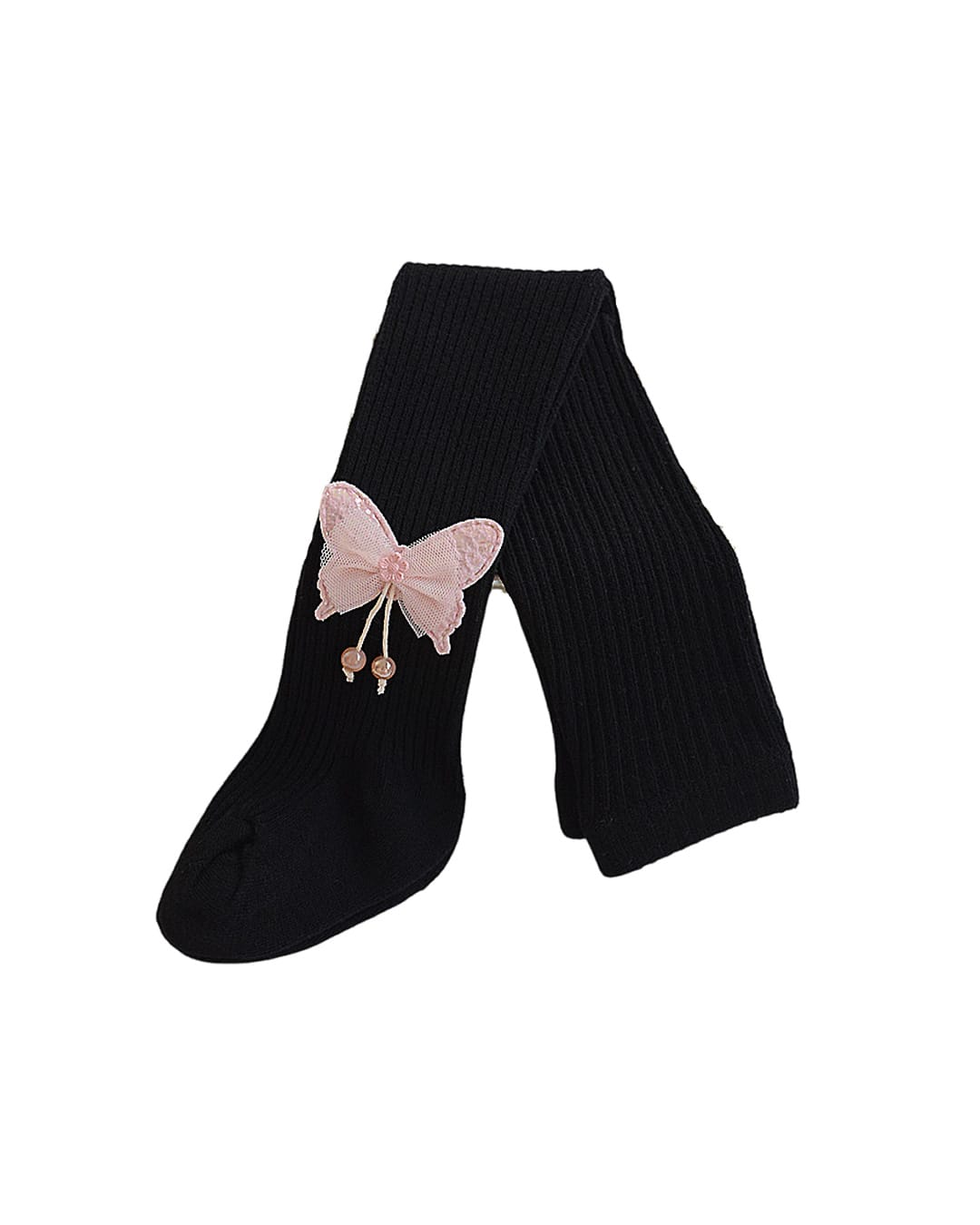 Βρεφικό/παιδικό καλσόν μαύρο χοντρό με ροζ Πεταλούδα