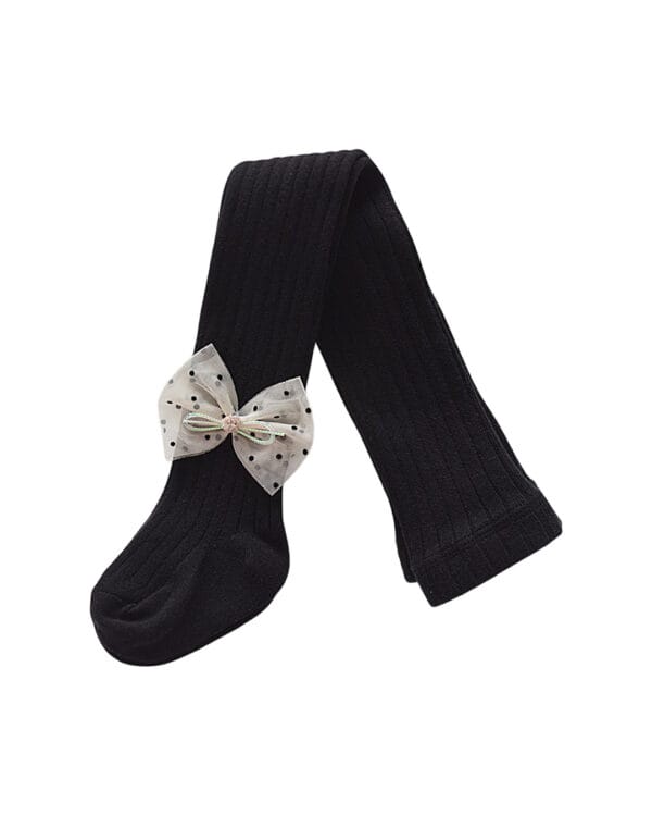 Βρεφικό/παιδικό καλσόν μαύρο χοντρό με πουά φιογκάκι