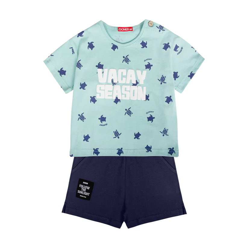 - μπλούζα κοντομάνικη βεραμάν με τύπωμα θαλάσσιες χελώνες και τη φράση Vacay season. Διαθέτει κουμπί στον ώμο που προσφέρει ευκολία στην εφαρμογή