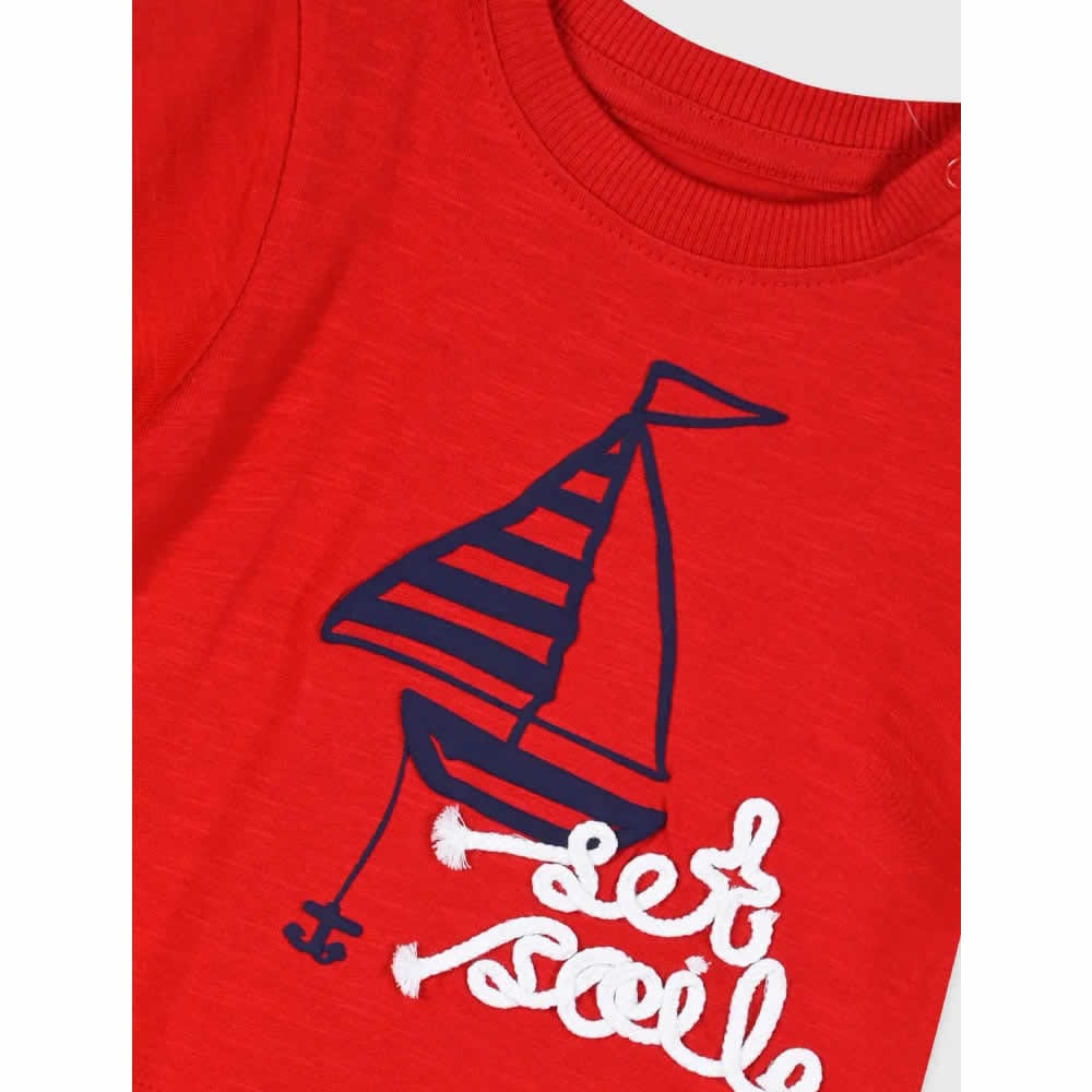 - μπλούζα κόκκινη κοντομάνικη με ανάγλυφες λεπτομέρειες