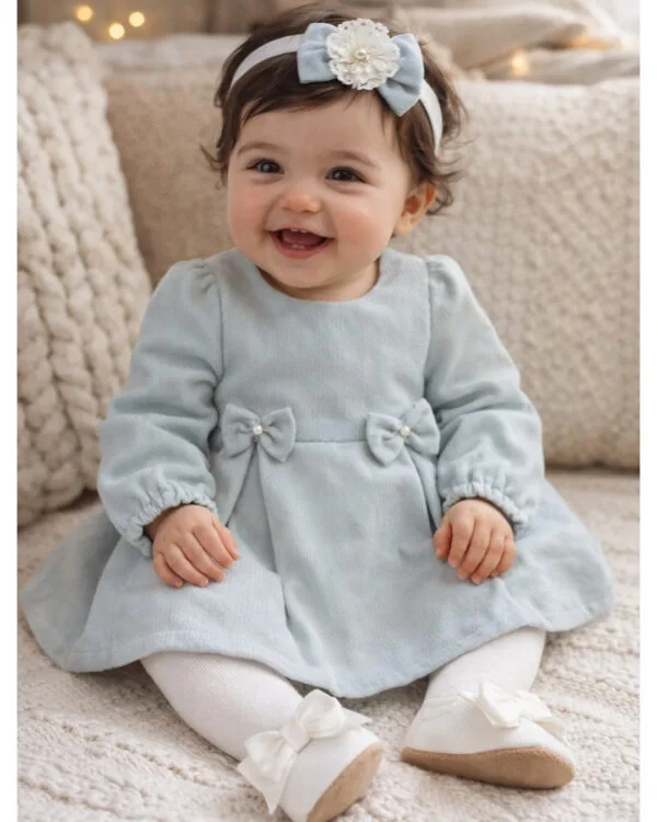 Βρεφικό φόρεμα γαλάζιο κοτλέ με φιογκάκια