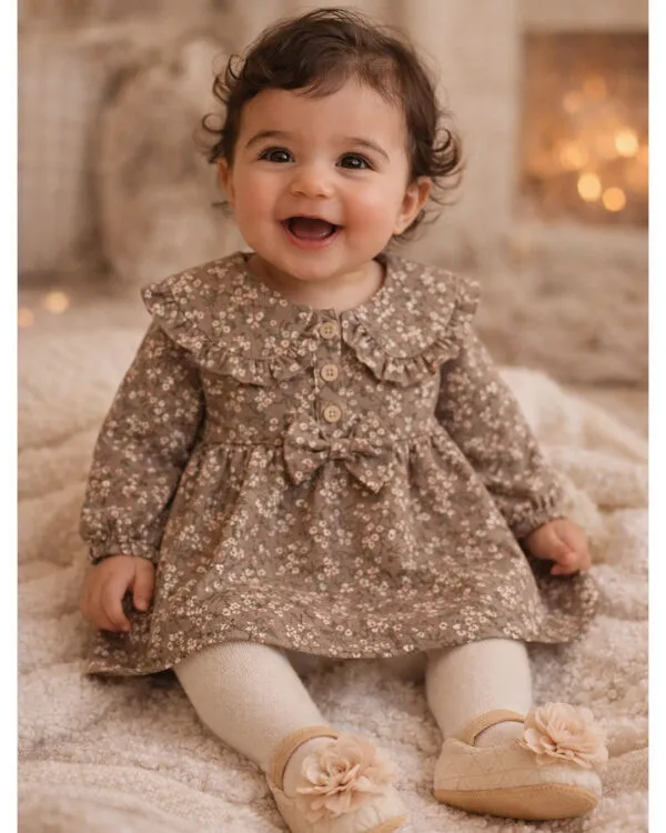 Βρεφικό φόρεμα λαδί floral με vintage γιακά