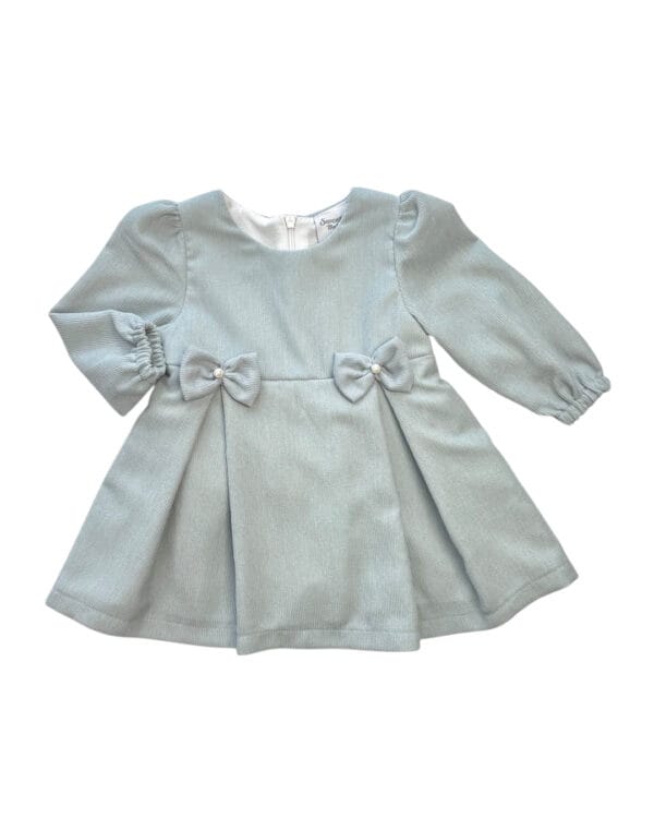 Βρεφικό φόρεμα γαλάζιο κοτλέ με φιογκάκια