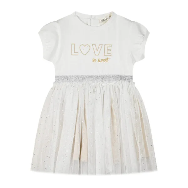 Φόρεμα λευκό-ροζ με τούλι και καρδούλες