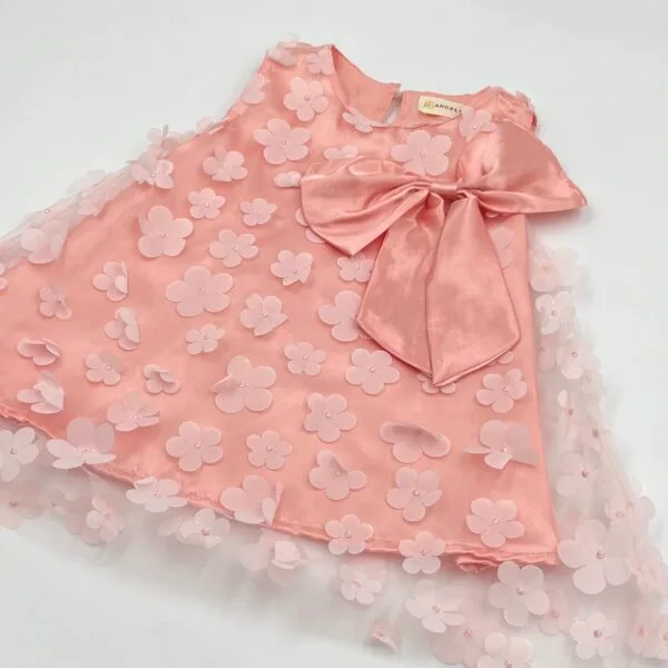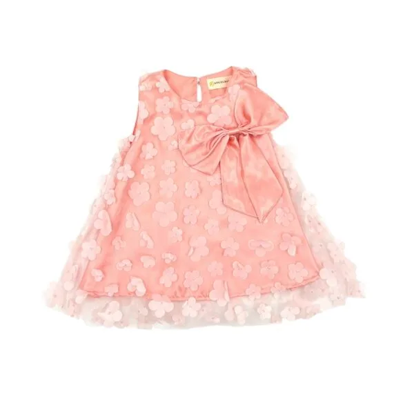 Παιδικό φόρεμα ροζ κουφετί minimal chic με μεγάλο φιόγκο πίσω και πέρλες