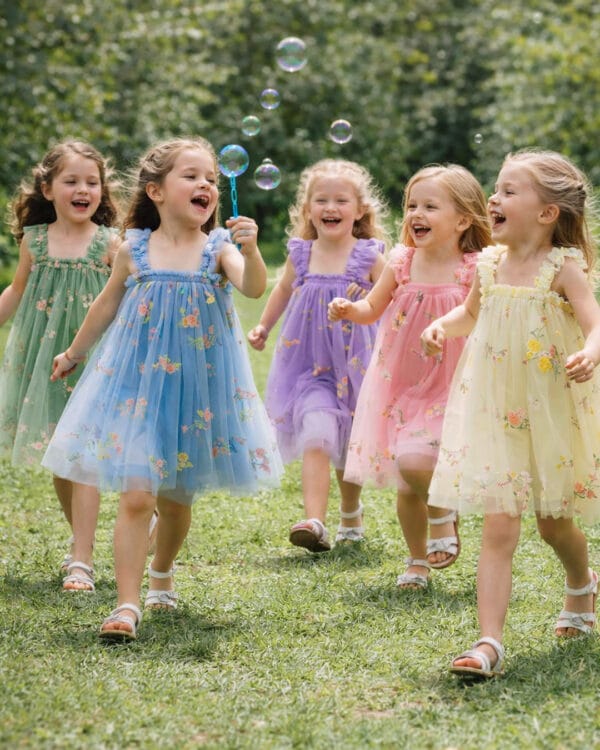 Παιδικό φόρεμα ροδακινί καρό με μαργαρίτες
