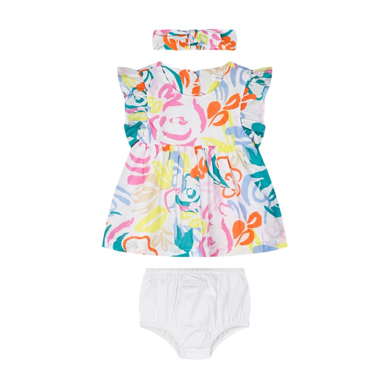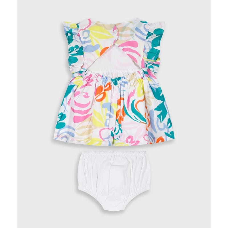 Βρεφικό φόρεμα πολύχρωμο με ανοιχτή πλάτη και λευκή φουφουλίτσα από κάτω.
