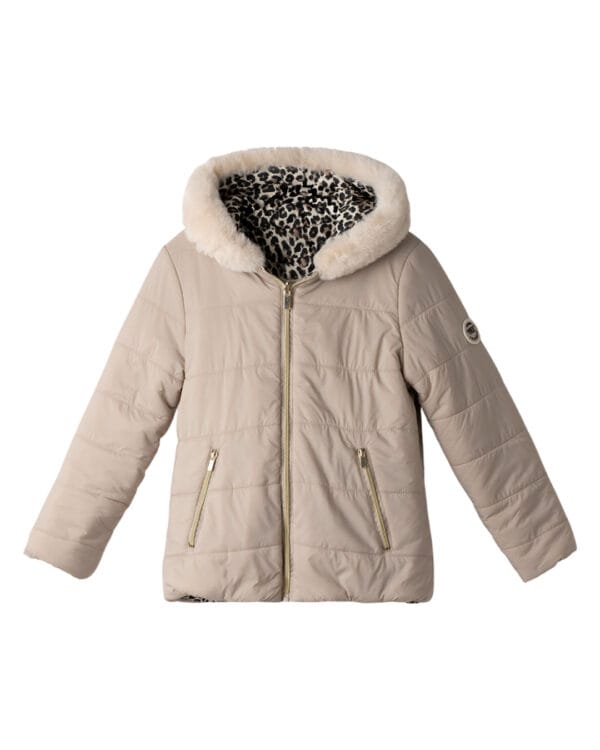 Παιδικό μπουφάν double face μπεζ-λεοπάρ