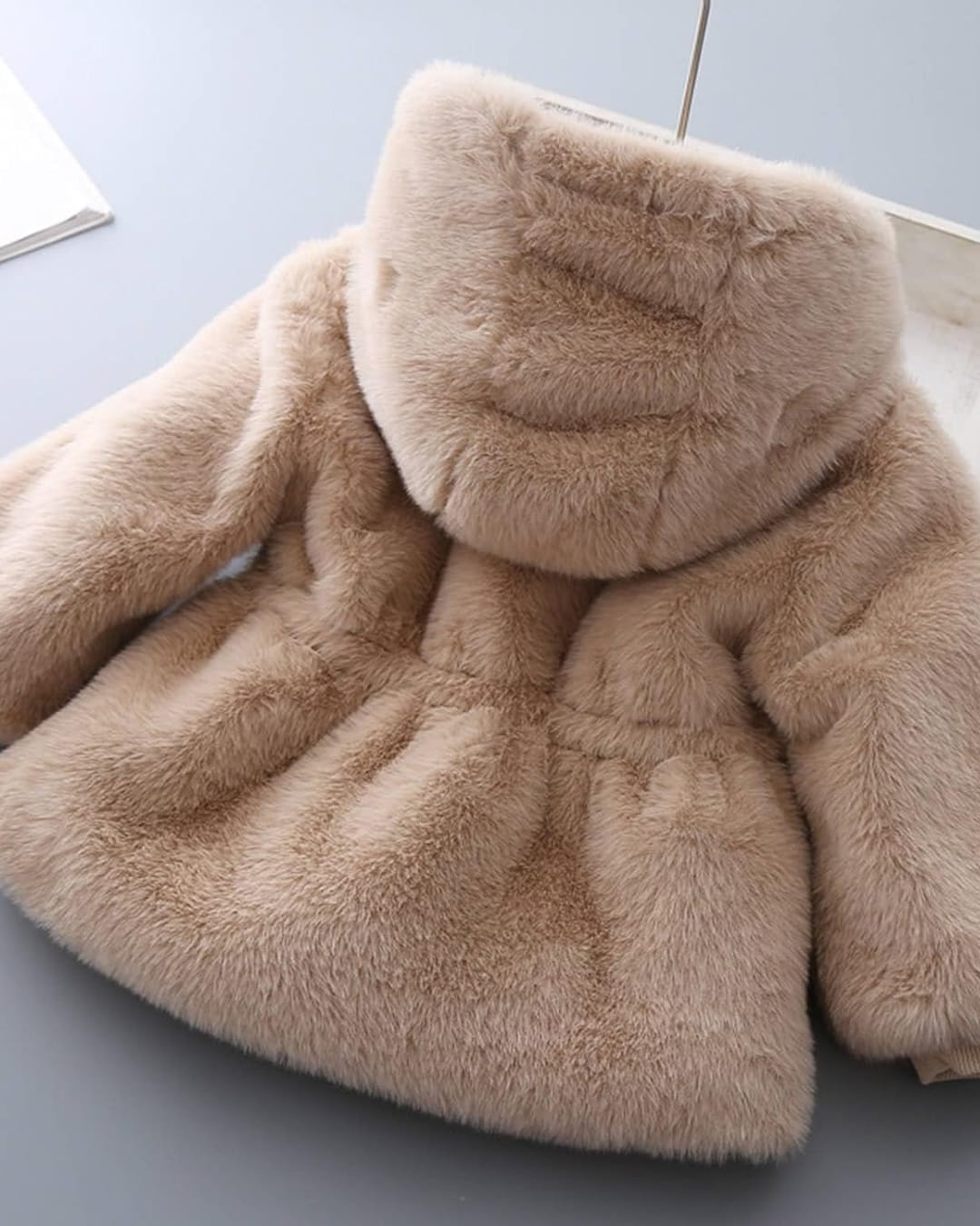 Παιδικό μπουφάν ροζ ιριδίζον pie de poule με γούνινη επένδυση