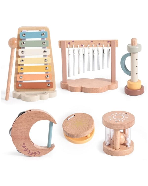 Όλα κατασκευασμένα από σιλικόνη και ξύλο, ιδανικά για χρήση από 18 μηνών.