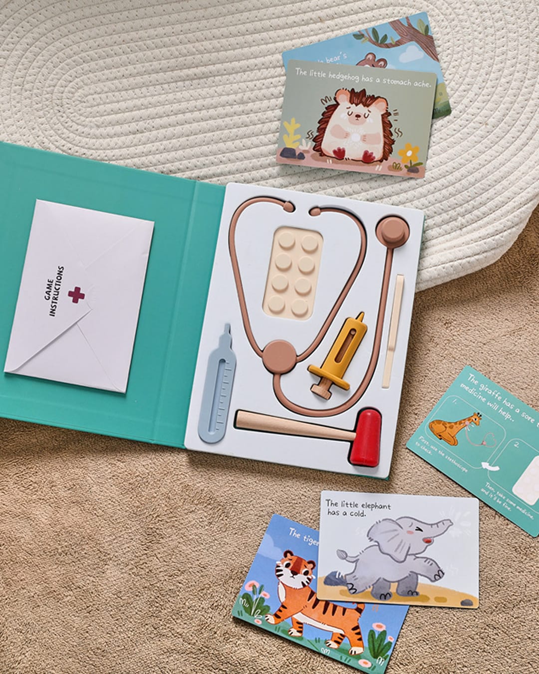 Σε πρακτική θήκη που μπορεί να μεταφερθεί εύκολα στην τσάντα και αποτελεί ιδανικό τρόπο απασχόλησης σε μια βόλτα, ένα εστιατόριο, μια μικρή εκδρομή με το αυτοκίνητο. Περιλαμβάνει όλα τα απαραίτητα αξεσουάρ για μία τυπική ιατρική εξέταση: