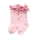 Κάλτσες ζαχαρί ψηλές με ανάγλυφο σχέδιο και σατέν φιόγκο