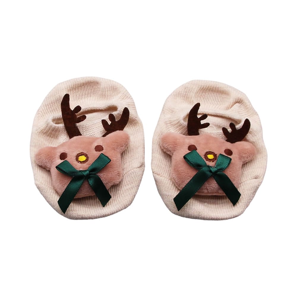 Κάλτσες βρεφικές μπεζ με τρισδιάστατα Ταρανδάκια με φιογκάκι.