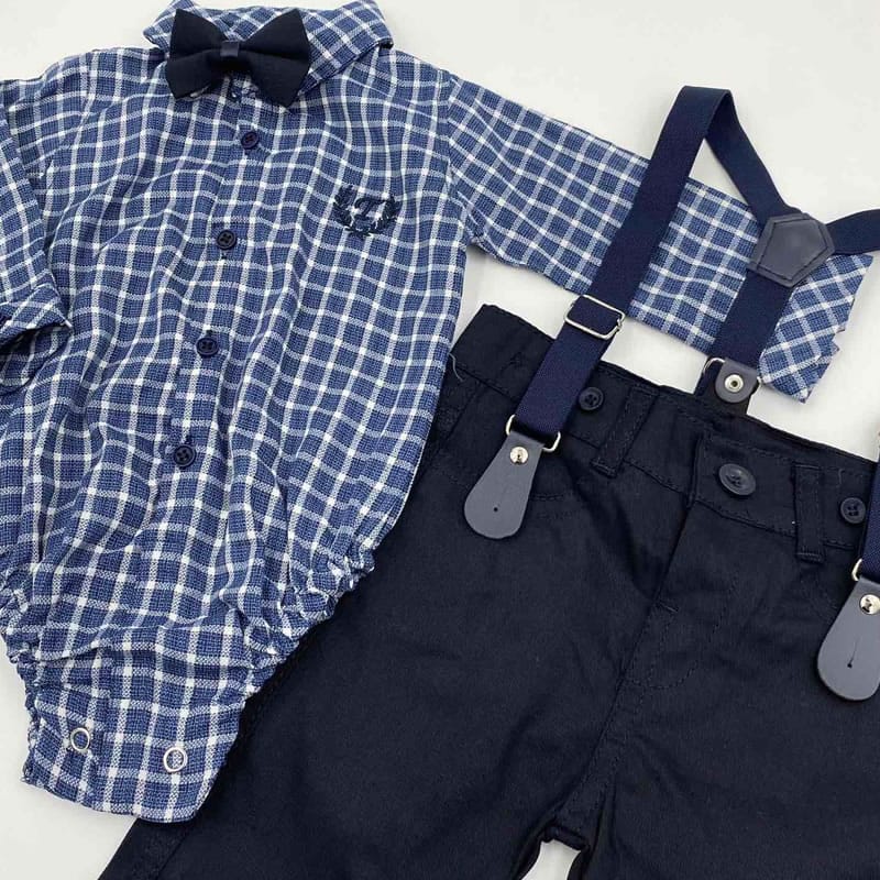 Σετ – Μπλούζα με Δεινόσαυρο, σορτς ριγέ και κορμάκι μπλε σκούρο