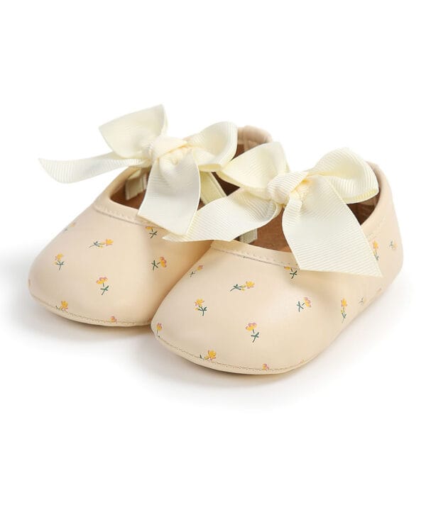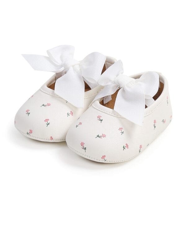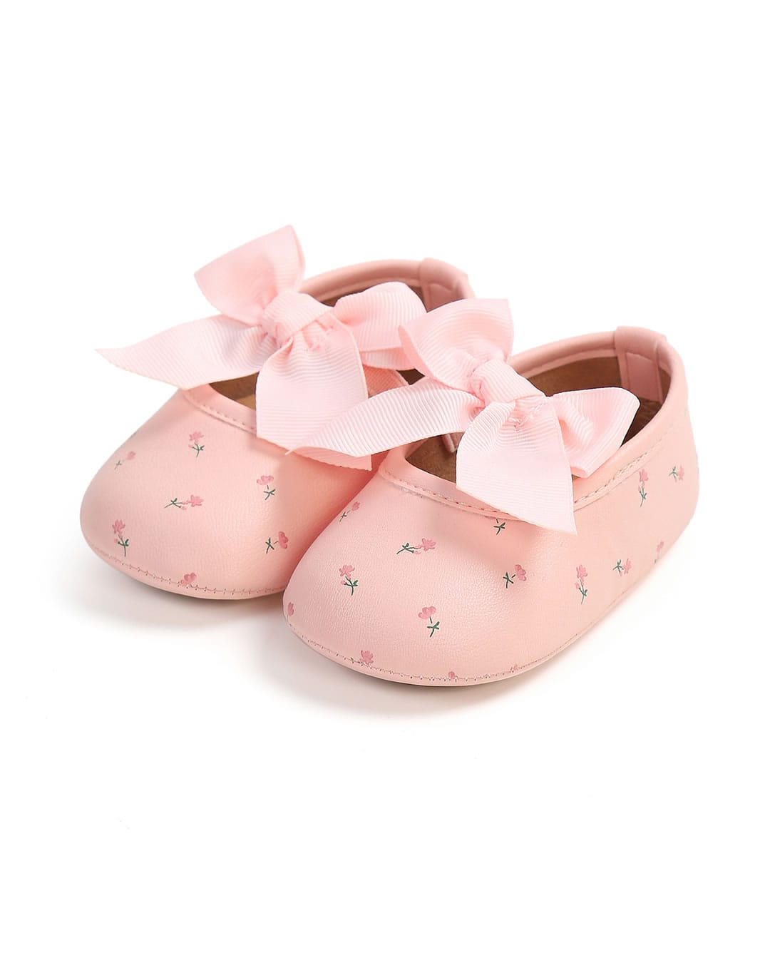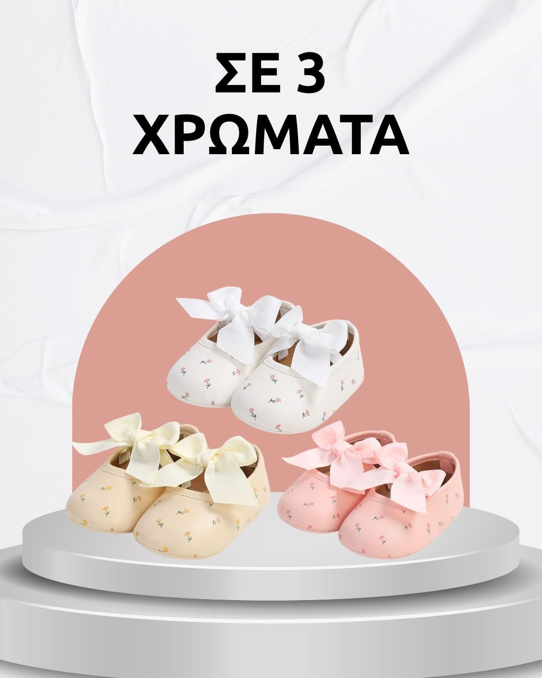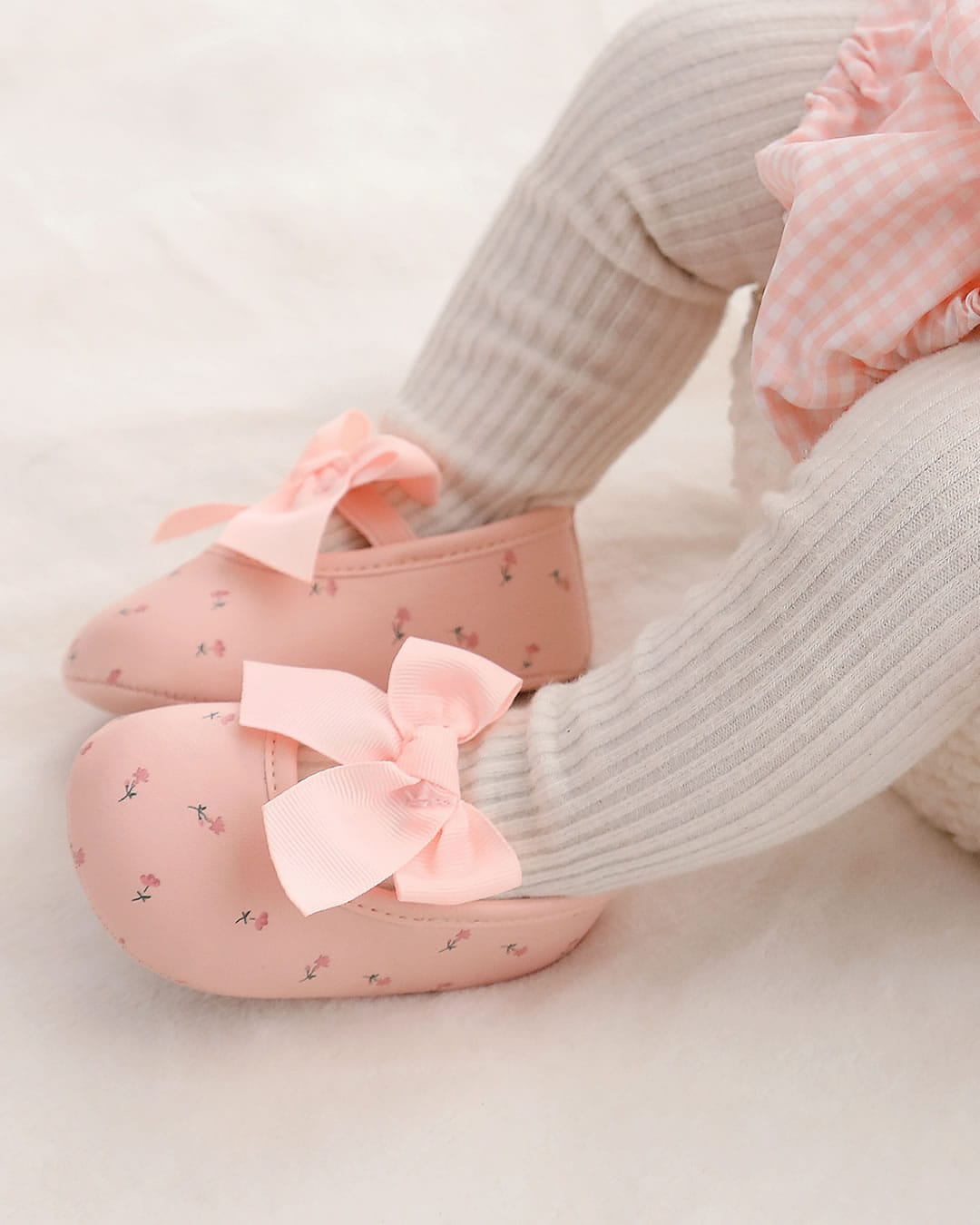 Βρεφικές μπαλαρίνες αγκαλιάς ροζ απαλό με μικροσκοπικά λουλουδάκια, λαστιχάκι και φιόγκο.