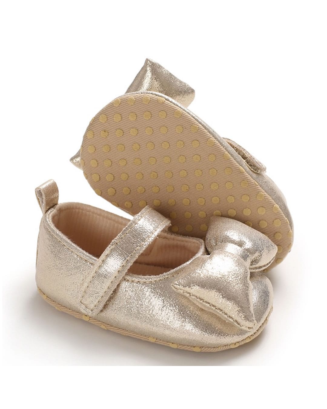 Βρεφικές μπαλαρίνες αγκαλιάς χρυσές μεταλιζέ με φουσκωτό φιογκάκι, με υφασμάτινο πάτο.