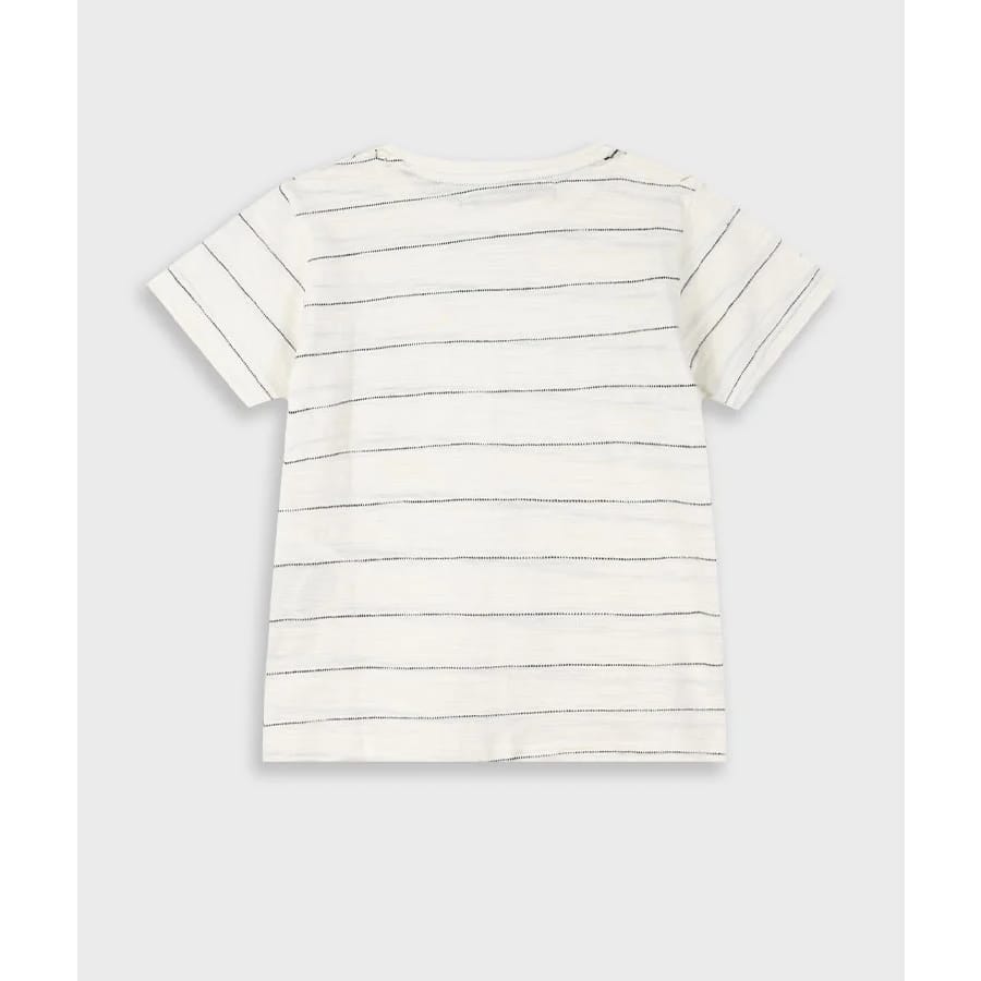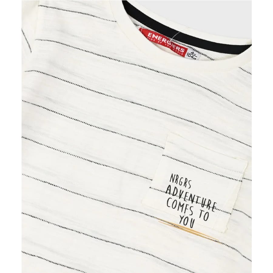 Παιδική μπλούζα κοντομάνικη για αγόρι λευκή ριγέ με τσέπη και τύπωμα