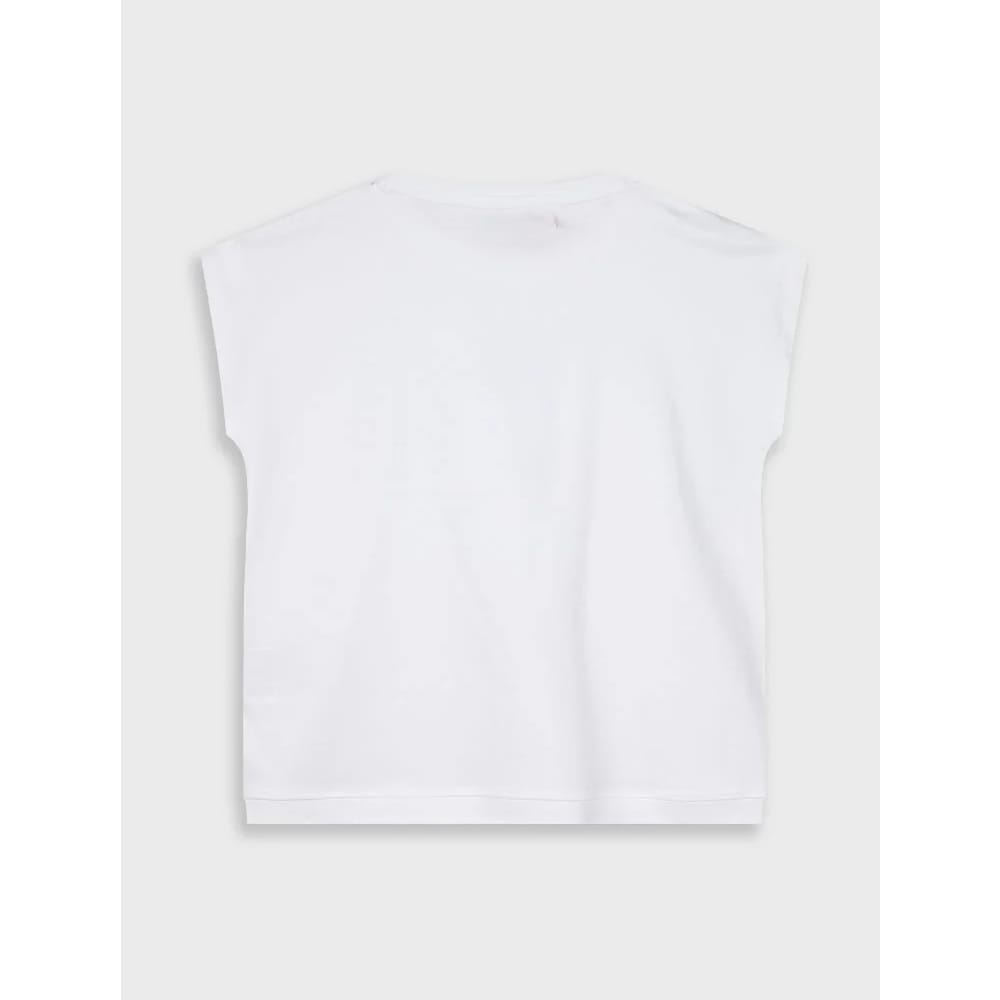 Παιδική μπλούζα crop top για κορίτσι λευκή κοντομάνικη με κρόσια από στρας στον ώμο.