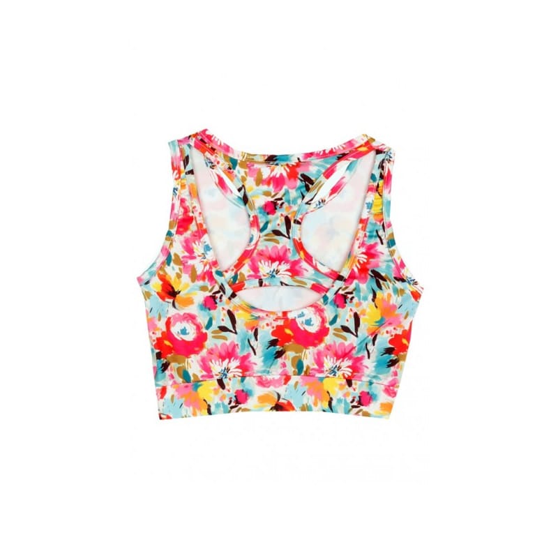 Παιδικό μπουστάκι για κορίτσι με αθλητική πλάτη σε φούξια απόχρωση και floral μοτίβο.
