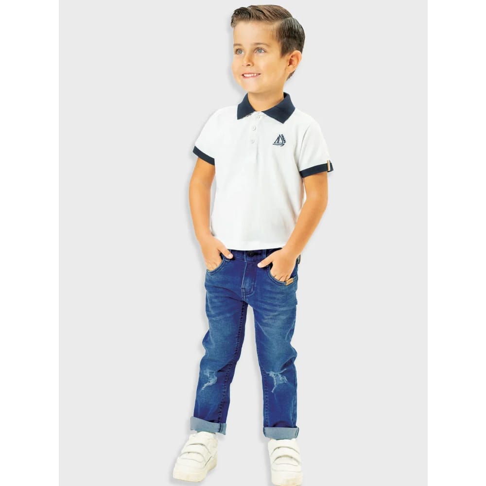 Παιδικό παντελόνι για αγόρι τζιν με ελαφρύ ξέβαμα και σκισίματα (ελαστικό).