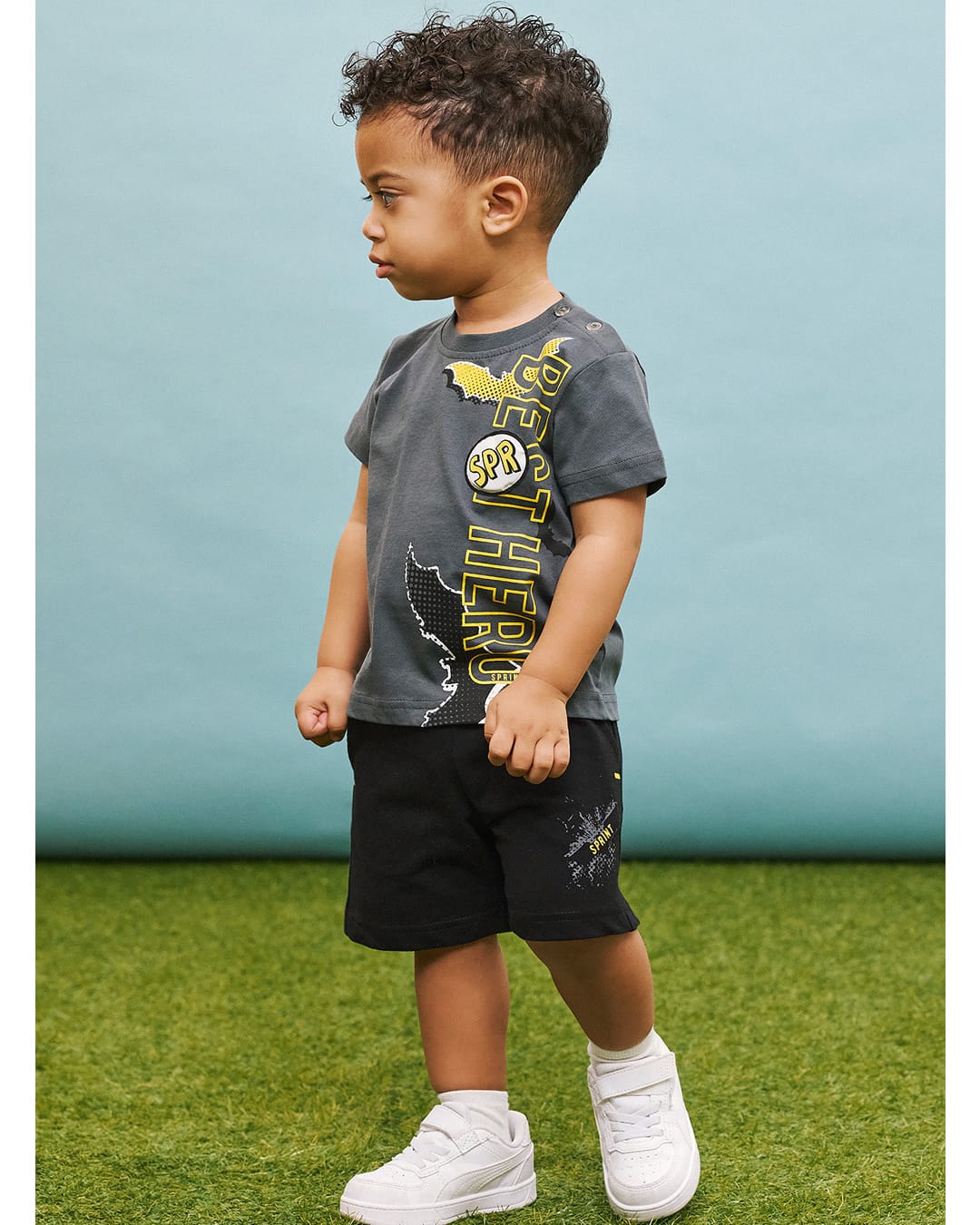 Παιδικό σετ για αγόρι με σορτς πορτοκαλί-μπλε σκούρο