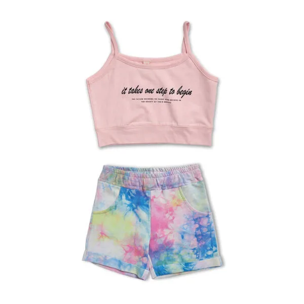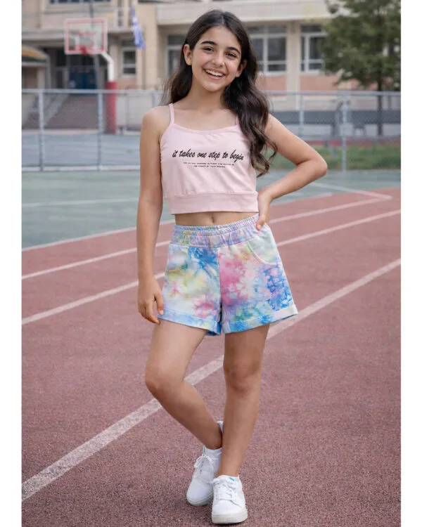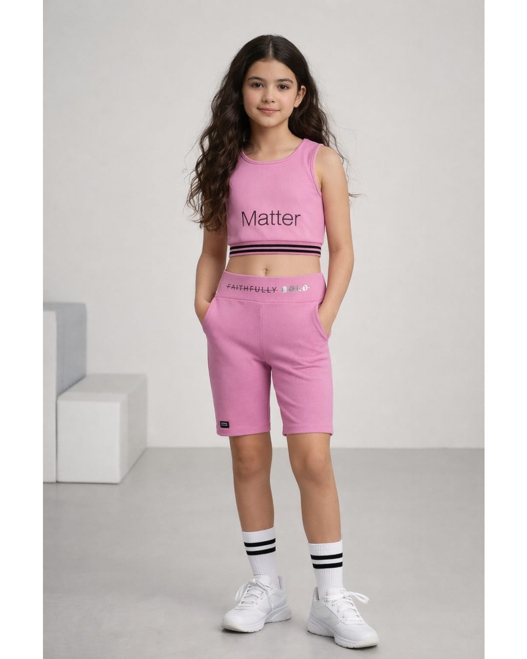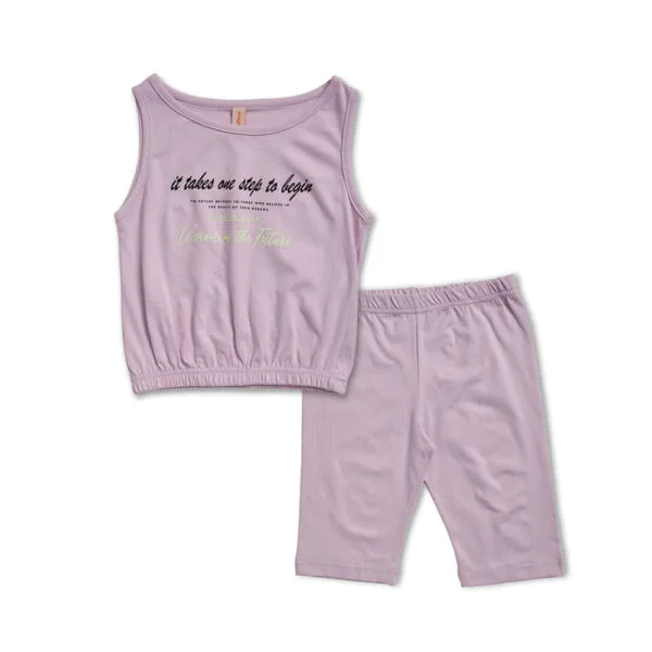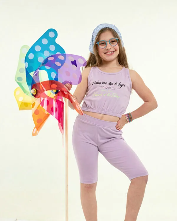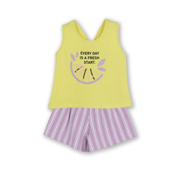 Παιδικό σετ για κορίτσι με σορτς κίτρινο-ριγέ λιλά
