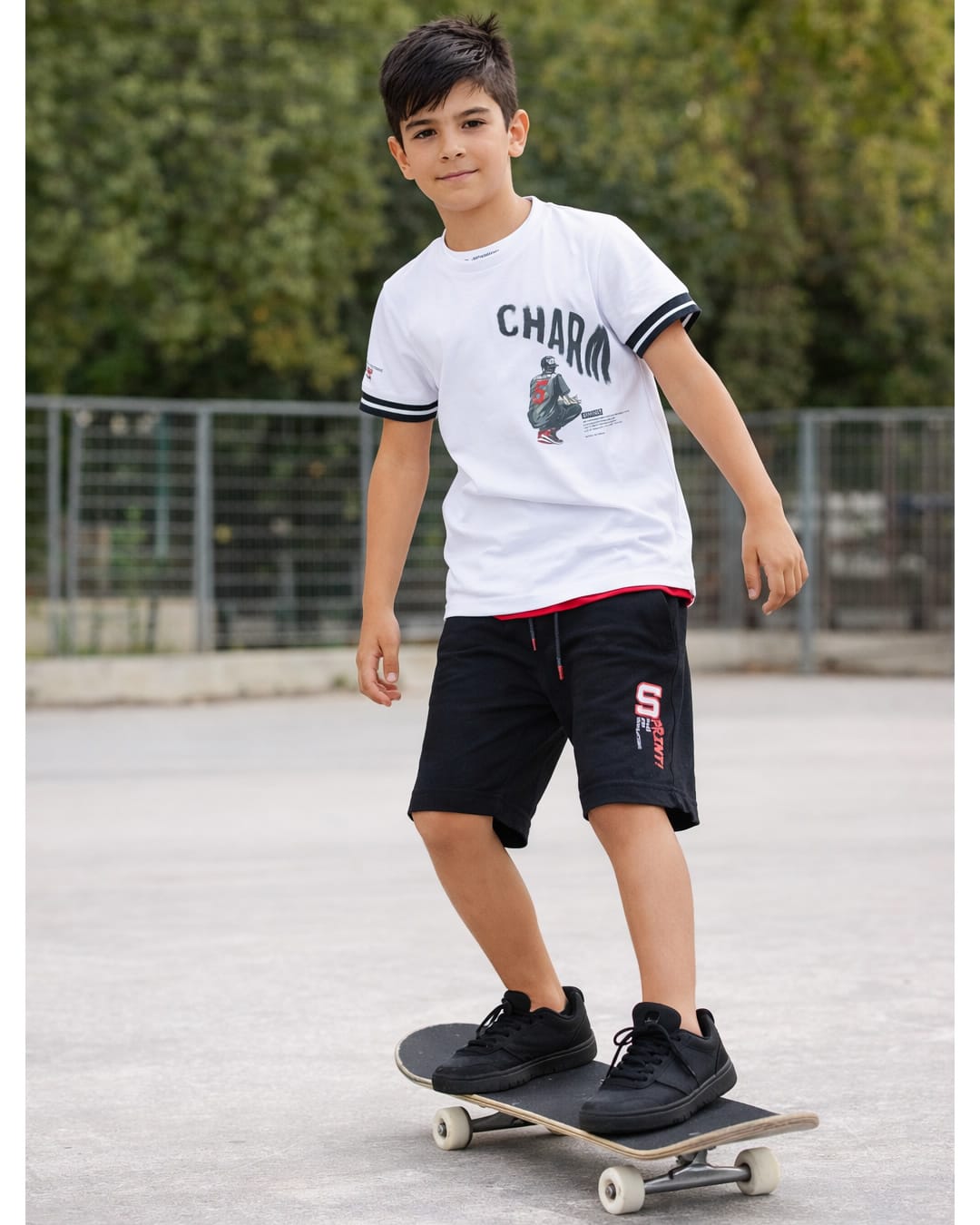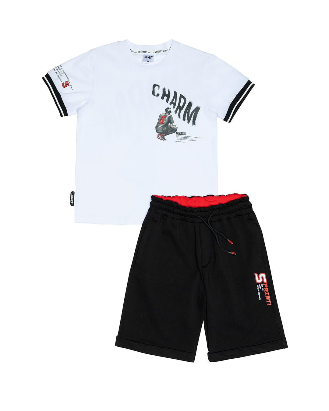 Σετ – Μπλούζα μαύρη με λευκά μανίκια και σορτς μαύρο