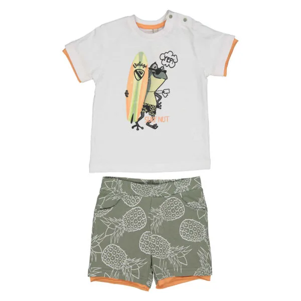 Σετ – Μπλούζα λευκή με Βάτραχο Surfer και σορτς με ανανάδες