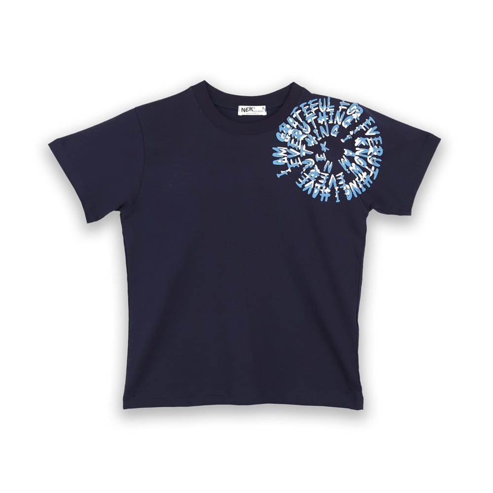 - μπλούζα μπλε σκούρη κοντομάνικη με τύπωμα στον ώμο