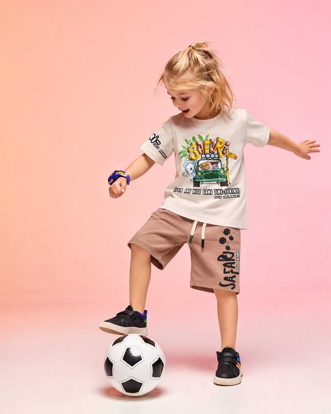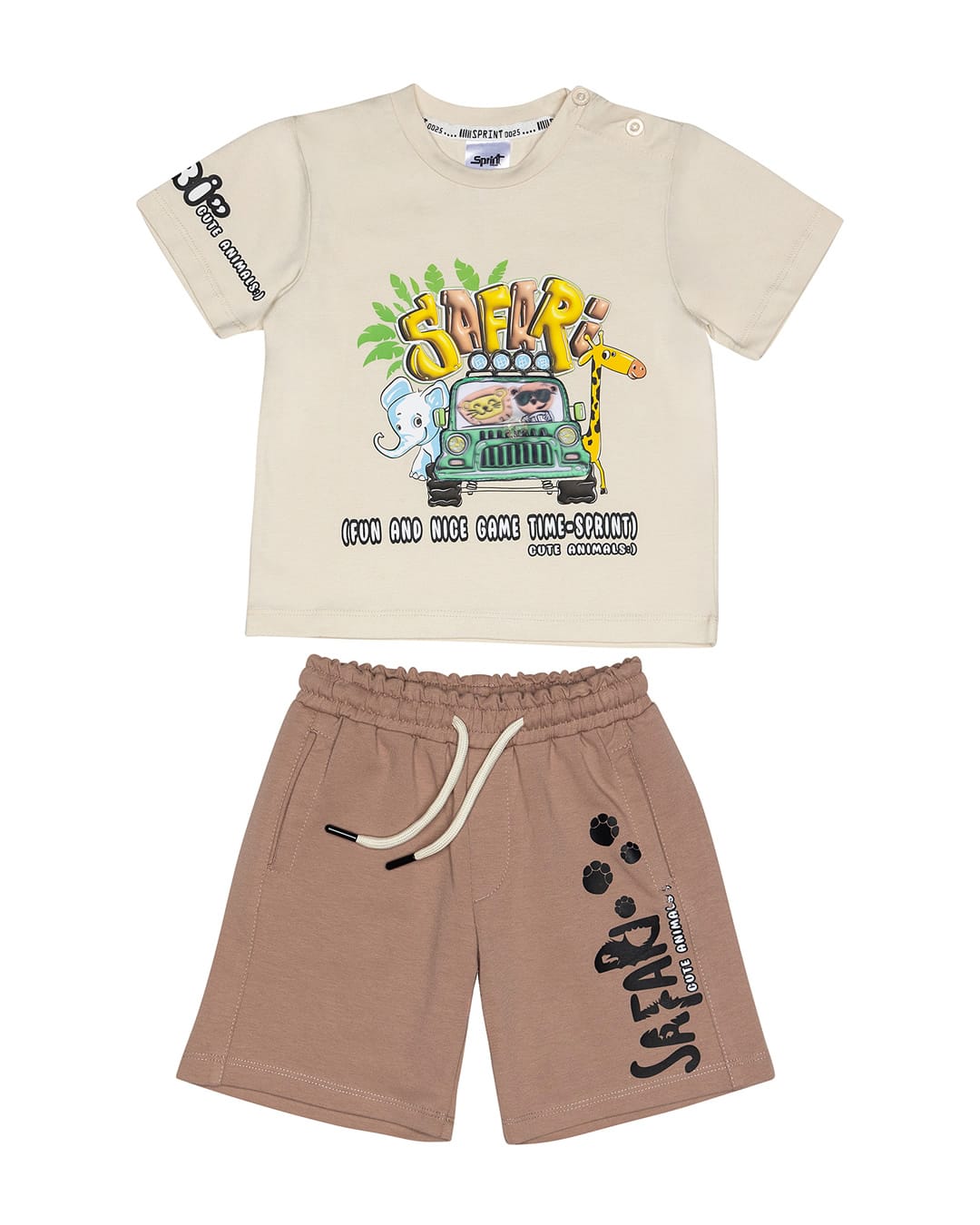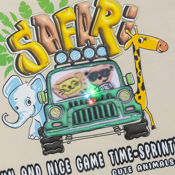- μπλούζα κοντομάνικη μπεζ με τύπωμα safari και πολύχρωμο φωτάκι Led