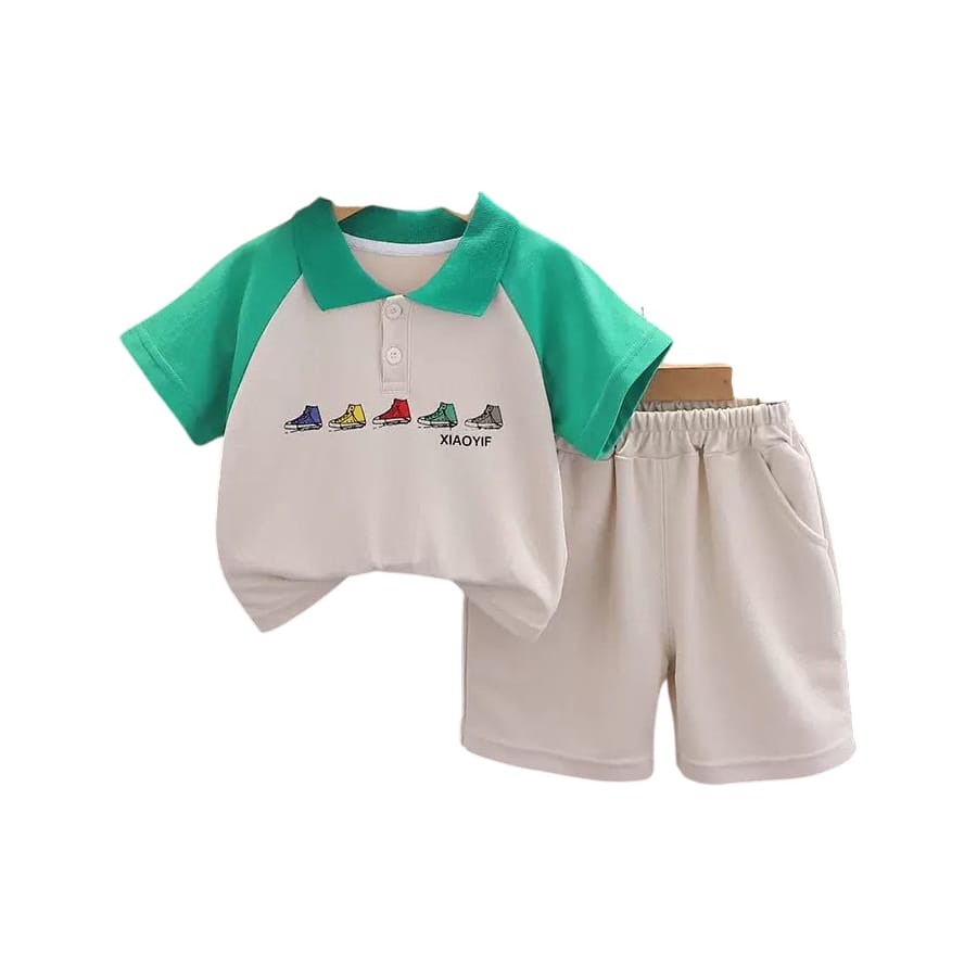 Παιδικό σετ για αγόρι μπεζ – πράσινο Παπουτσάκια