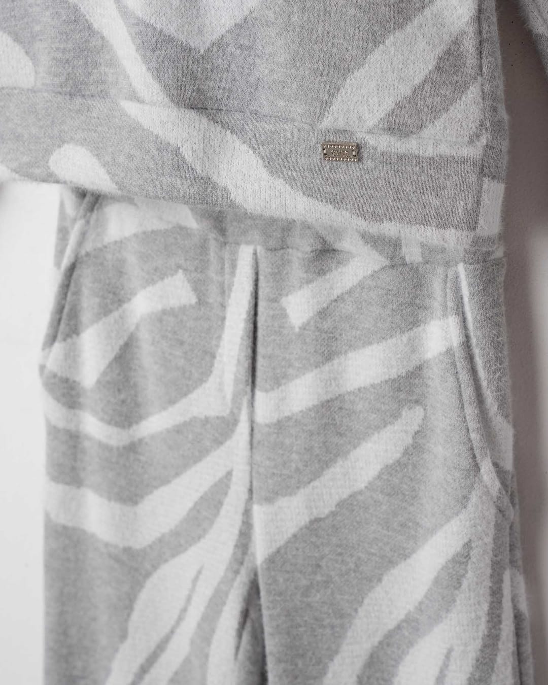 - παντελόνι πλεκτό λευκό-γκρι φαρδύ με τσέπες
