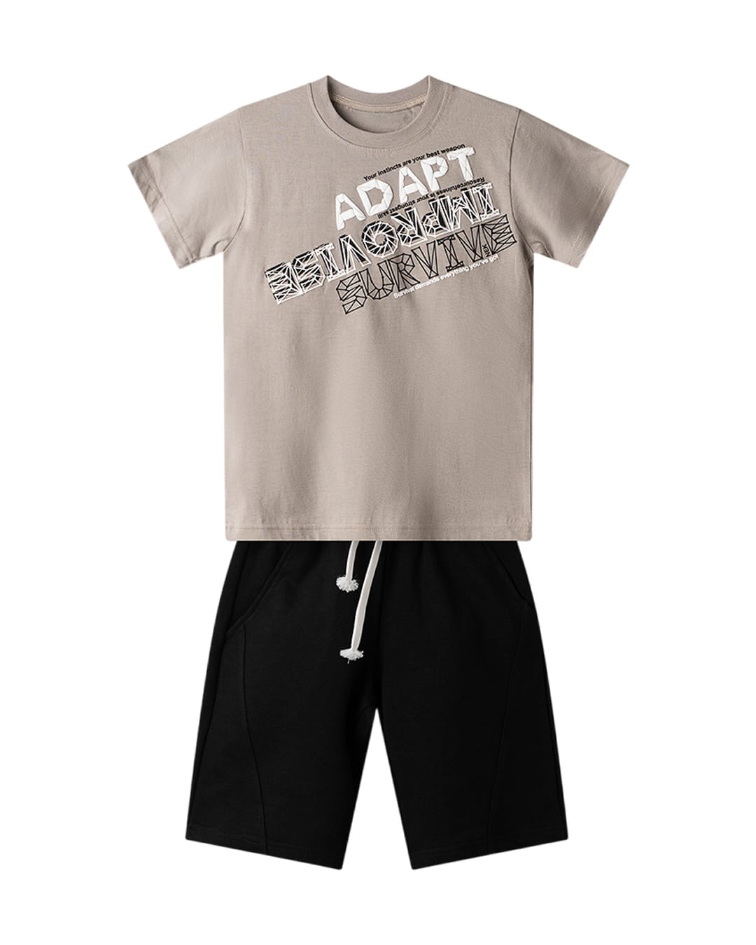 Σετ – Μπλούζα μαύρη με λευκά μανίκια και σορτς μαύρο