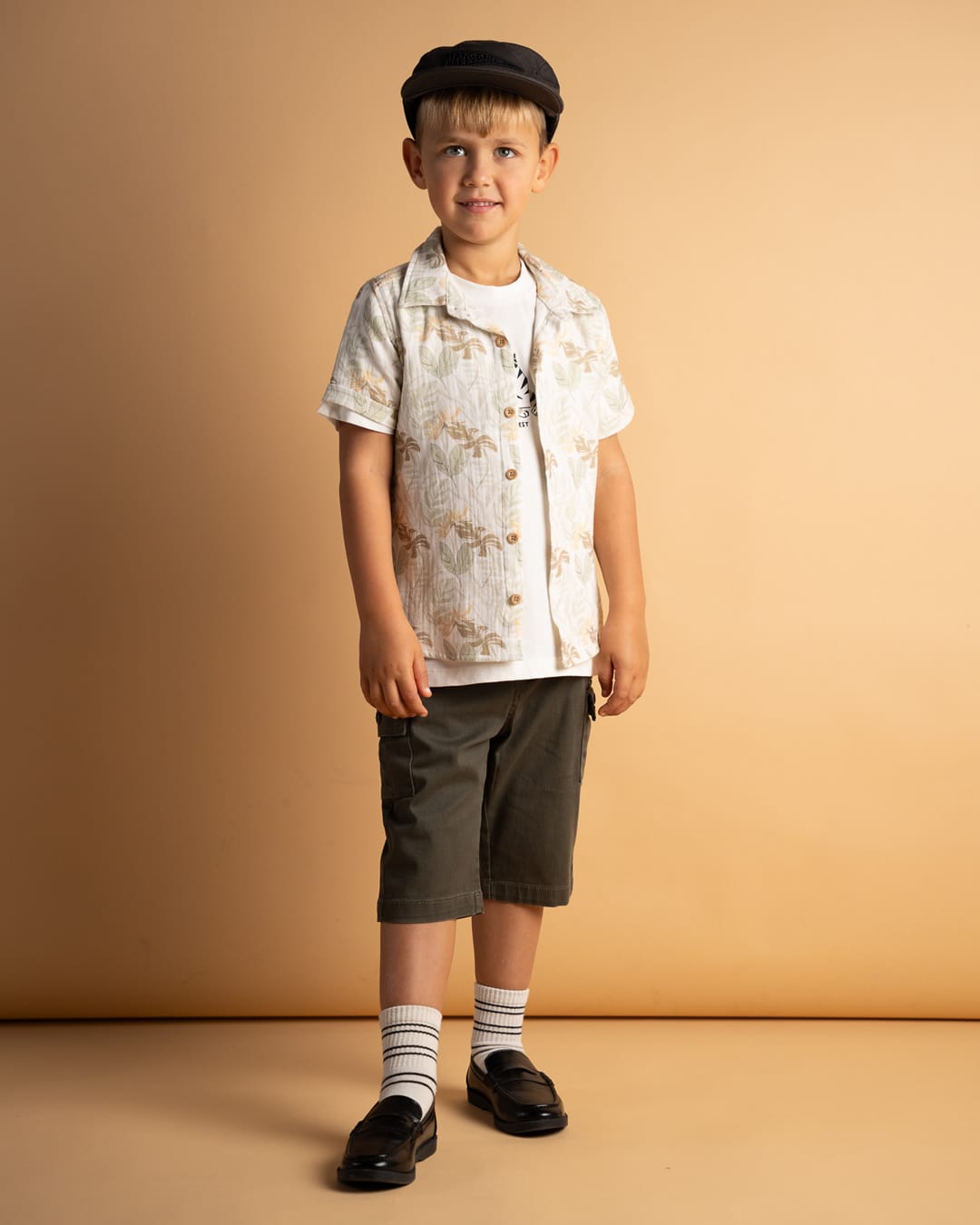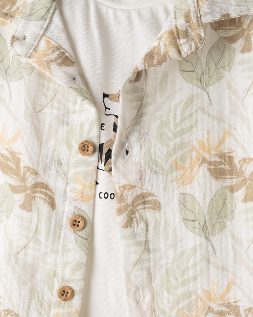 Σετ – Μπλούζα λευκή με δεινοσαύρους και σορτς μπεζ με ζώνη