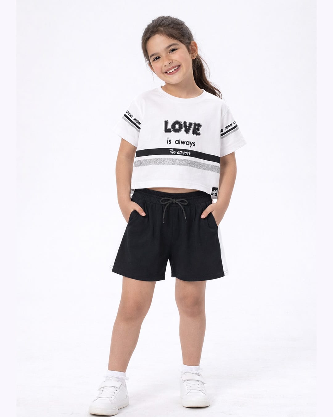 Παιδικό σετ για κορίτσι με σορτς κίτρινο-ριγέ λιλά