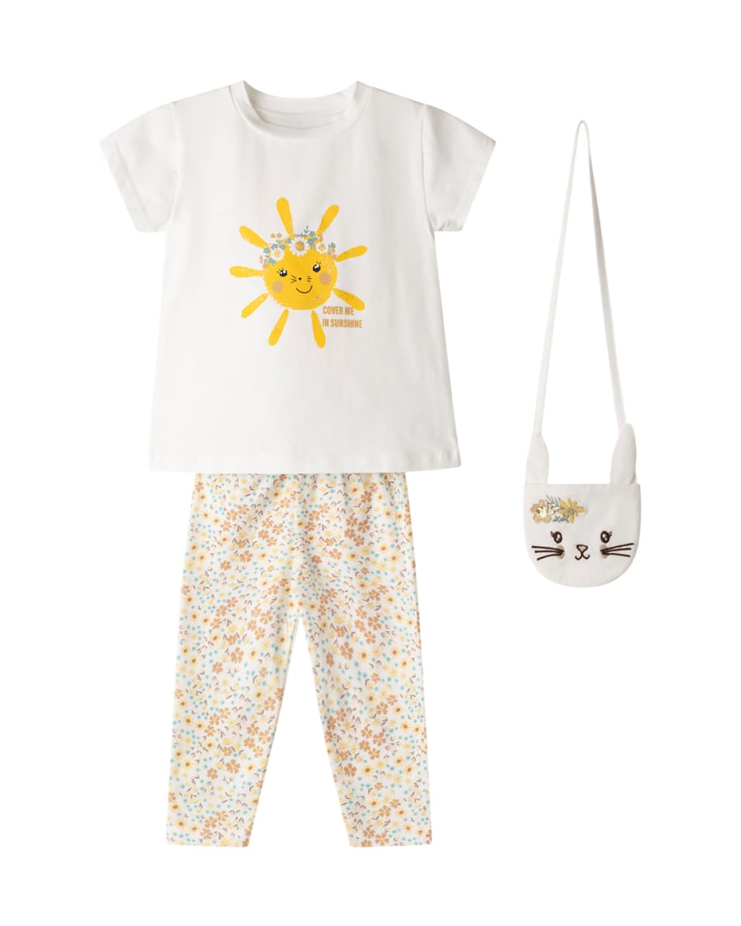Σετ κίτρινο-φυστικί με Λουλουδάκια και σορτς