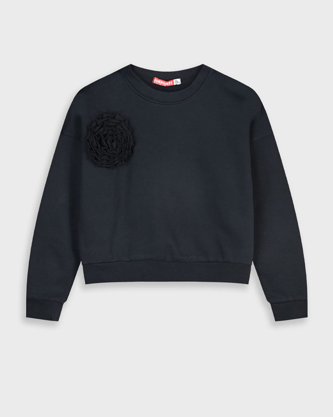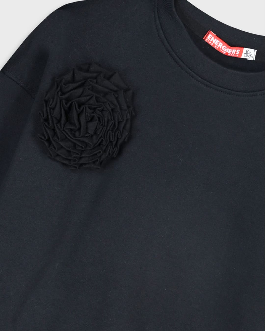 - μπλούζα μαύρη με ελαφρύ χνούδι και υφασμάτινο λουλούδι
