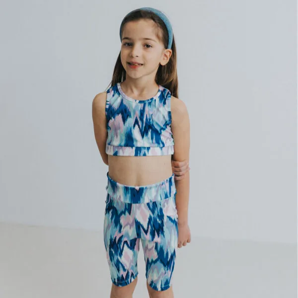 Σετ γαλάζιο-λιλά digital με μπουστάκι και biker κολάν