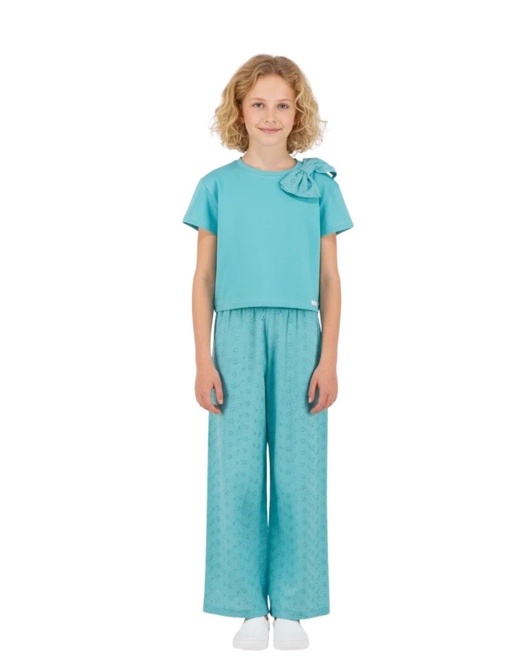 Παιδικό σετ για κορίτσι σιέλ πλισέ με ζιπ κιλότ