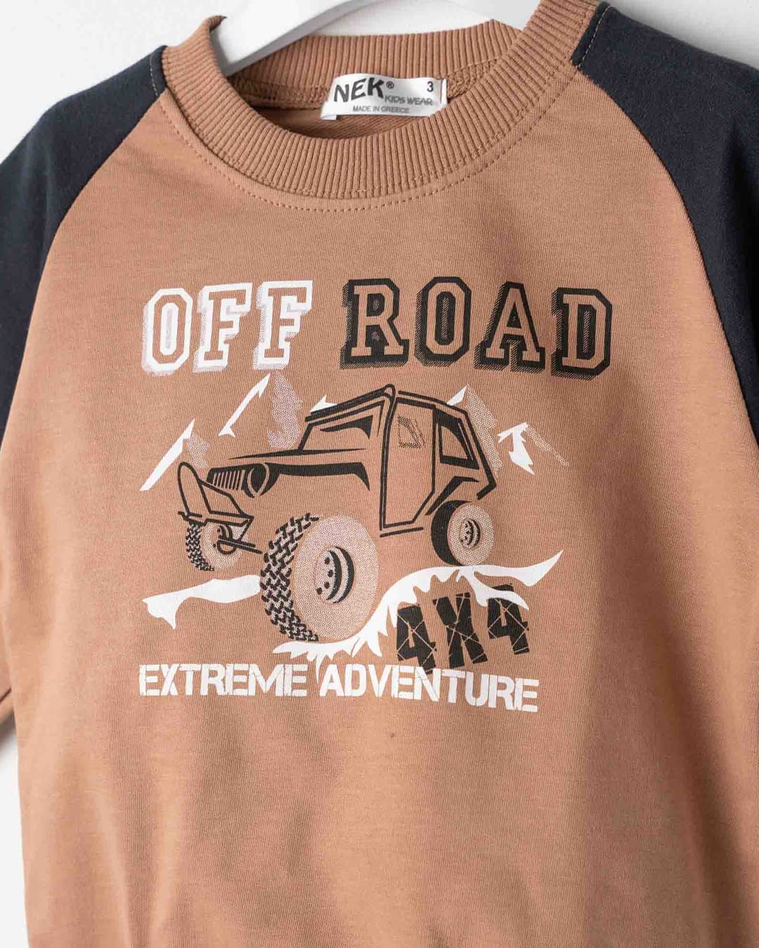 - μπλούζα καφέ-λευκή-μπλε σκούρη με τύπωμα Τζιπ 4χ4
