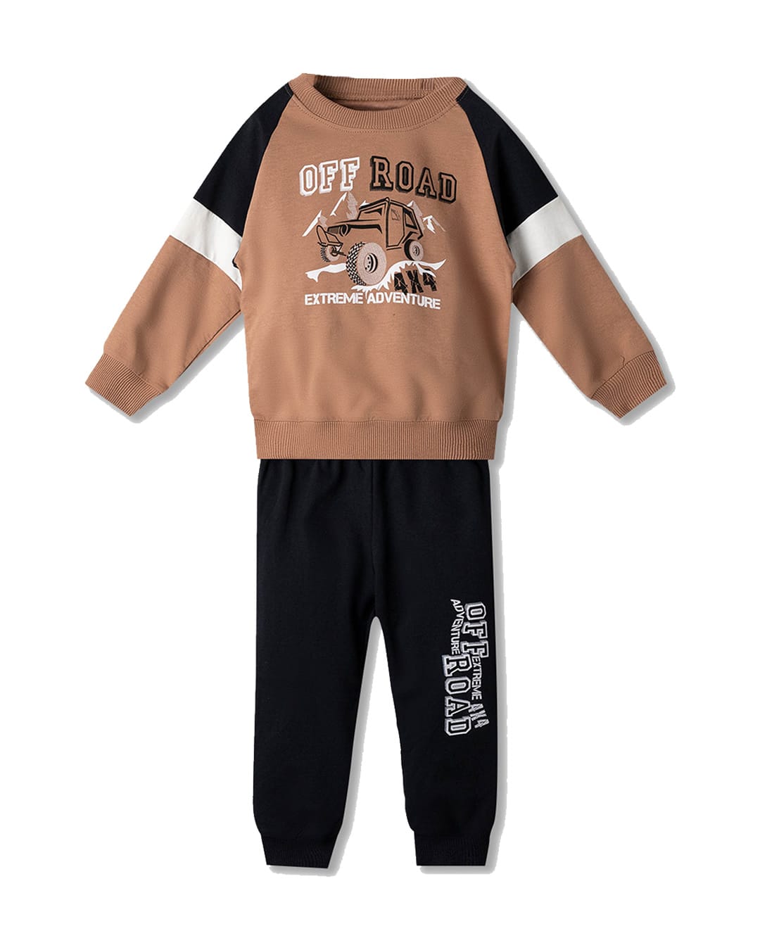 Παιδικό σετ φόρμας fleece μπλε-σκούρο μπεζ Next Level