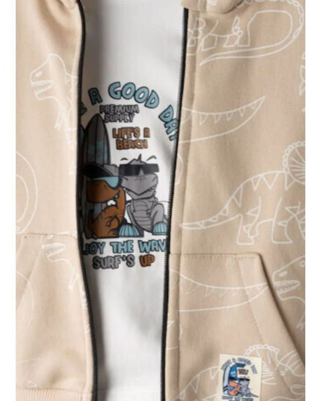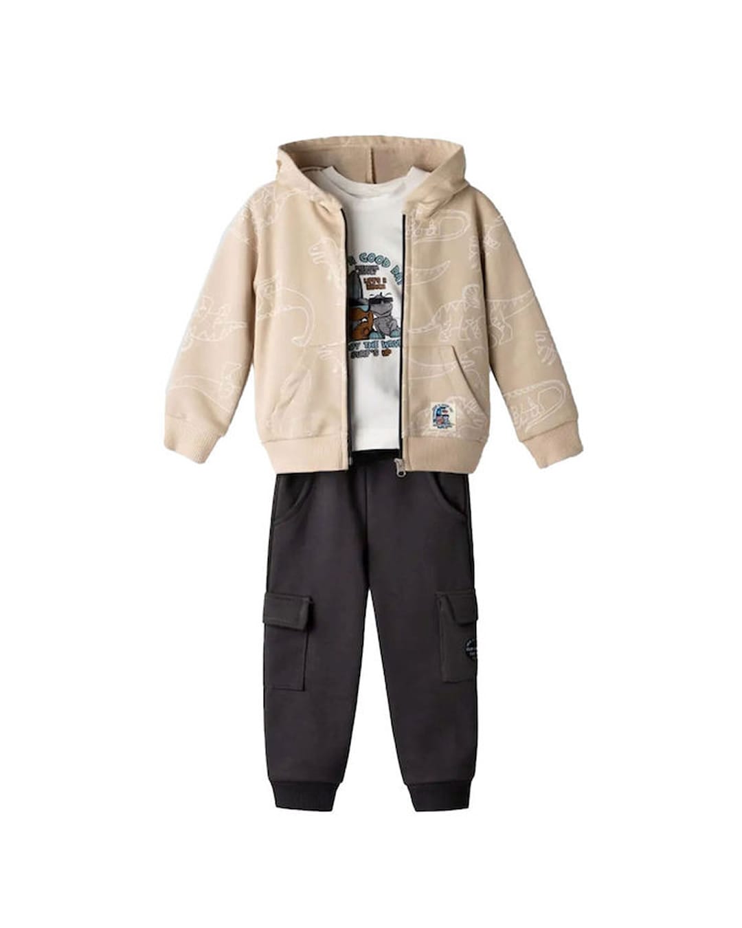 Παιδικό σετ φόρμας αχνούδιαστο μπεζ-ανθρακί με ζακέτα Dino (3τμχ)